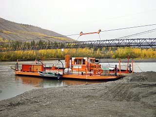 betriebenen Fähre über den - kaum zu glauben: - Ross River.